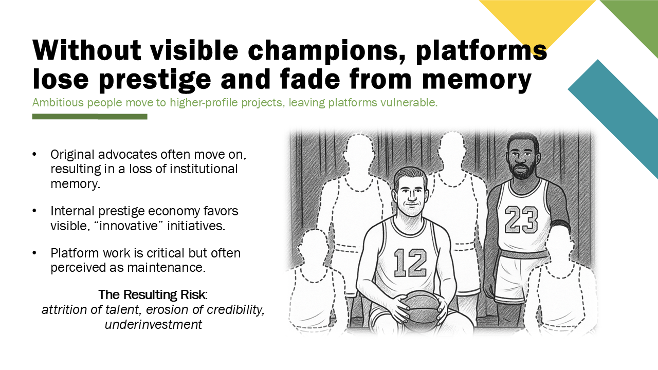 - And understand what your leaders need to win: ensure every stakeholder can point to the platform as a reason for their success. That’s how platforms stay visible, funded, and trusted.