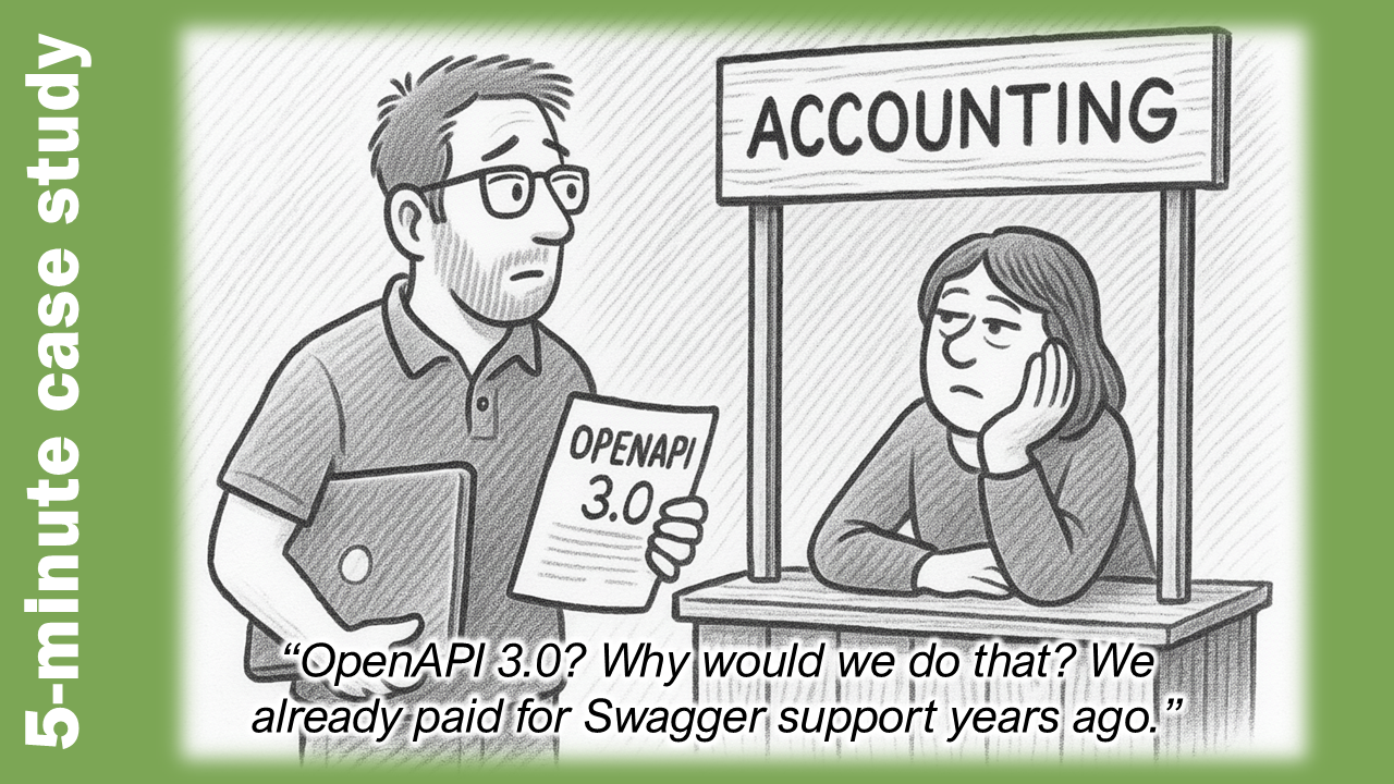 The failure to get OpenAPI 3.0 prioritized was also my failure to properly understand what my executive stakeholders needed to hear. Tech leads cared about compatibility and reuse, but product management only saw another competing priority. Leads didn’t see how this helped deliver features faster, and executives weren’t convinced it tied to strategic goals.