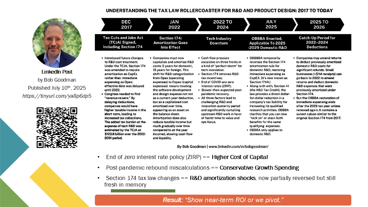 - Section 174 tax law changes == R&D amortization shocks, now partially reversed but still fresh in memory == platforms which may have been amortized over years (and thus reducing expense on any single year) now were expensed all at once, again reducing perceived revenue.